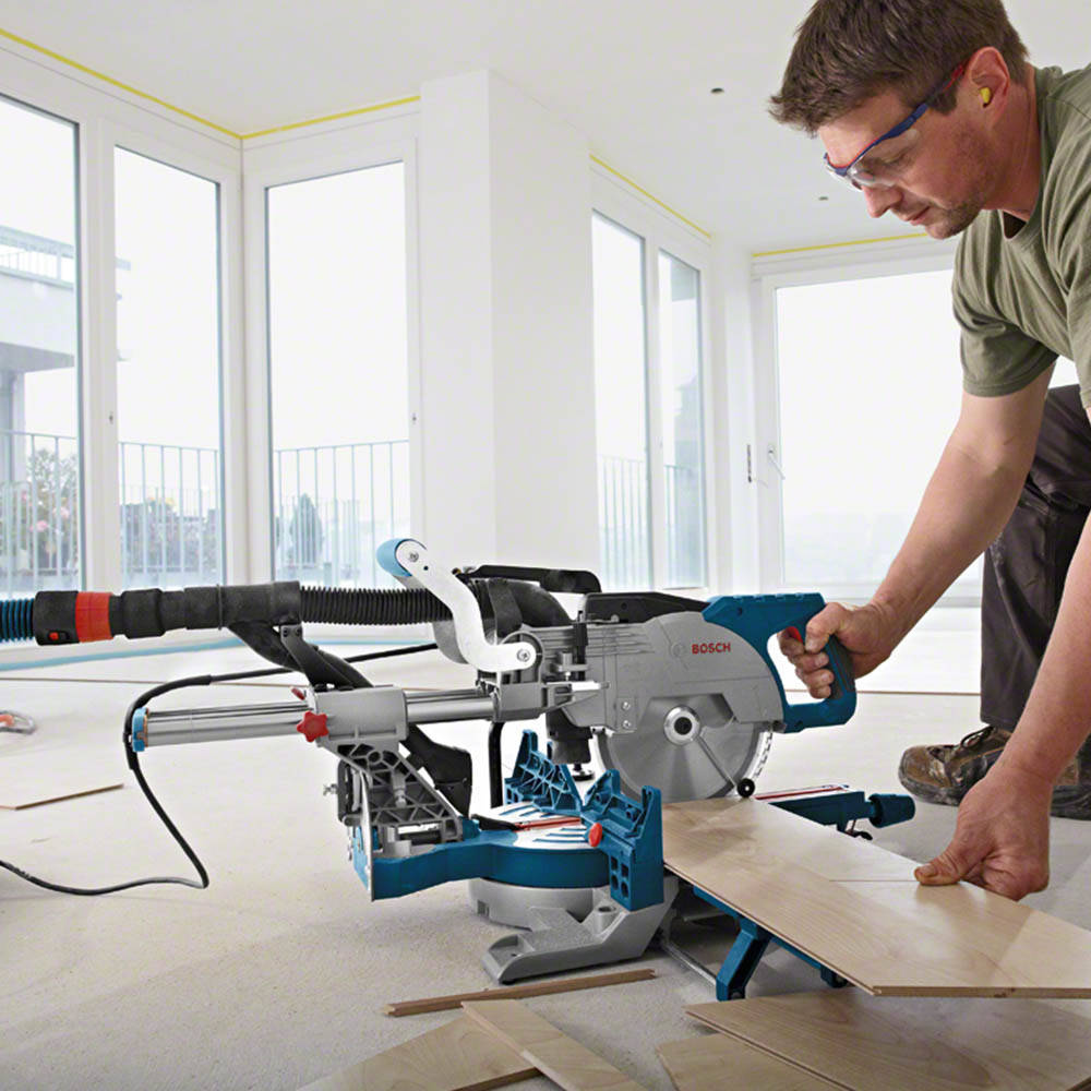 Ukośnica Bosch GCM 8 SJL to narzędzie przeznaczone do przecinania i docinania różnego rodzaju materiałów. Za jej pośrednictwem w łatwy sposób można przyciąć na wyznaczoną odległość kantówki, listwy przypodłogowe, ramy obrazów, panele podłogowe, deski i wiele, wiele innych. Stosując odpowiednie tarcze możliwe jest cięcie cienkościennych arkuszy aluminium oraz tworzywa sztucznego. Z racji niewielkich gabarytów ukośnica z powodzeniem może służyć jako podstawowe narzędzie do przycinania w pracy mobilnego montera, budowlańca lub pracownika remontowo-wykończeniowego. Bosch GCM 8 SJL charakteryzuje się tarczą o średnicy 216mm. Ukośnica posiada możliwość ustawienia kąta 52° w lewo oraz 60° w prawo. Ponadto ukośnicę można pochylić, dzięki czemu istnieje możliwość cięcia w innej płaszczyźnie. Ukośnica może zostać pochylona w prawo o 2° oraz o 47° w lewo. Takie możliwości ukośnicy z powodzeniem mogą zostać wykorzystane w szerokim wachlarzu prac.
