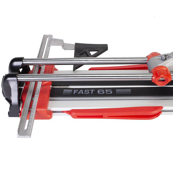• Przecinarka Rubi FAST-65 wyposażona jest w ogranicznik boczny z przedziałką milimetrową i przymiarem pod kątem 45º, wspomaga cięcia seryjne.
