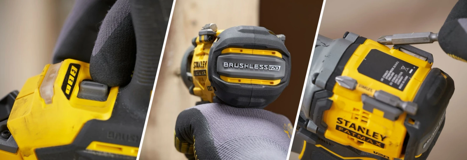 - Kompatybilność z systemem Stanley Fatmax V20 (narzędzi, akumulatorów i ładowarki)
