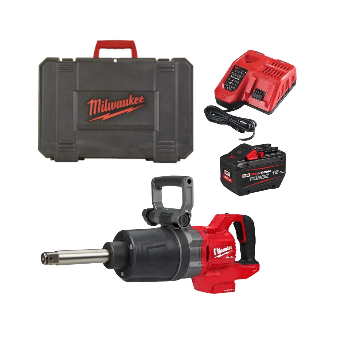 Zestaw zawiera szybkie ładowanie M12-18 FC oraz akumulator M18™ FORGE™ o pojemności 12.0 Ah, który zapewnia maksymalną moc i długi czas pracy w ramach systemu HIGH OUTPUT™. Całość zapakowana w trwałą walizkę transportową.