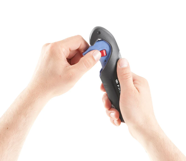 - Podwójne zabezpieczenie: blokada spustu i zatrzask ostrza