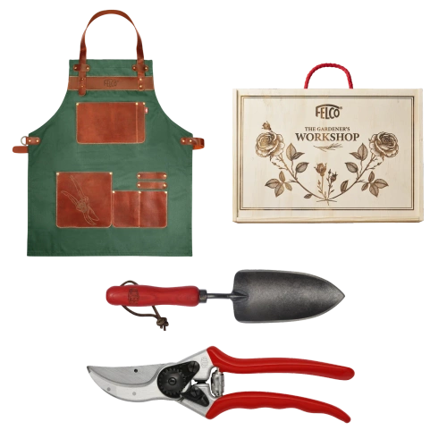 Zestaw ręcznych narzędzi ogrodowych FELCO 935-D to przemyślane połączenie jakości, elegancji i funkcjonalności, stworzone z myślą o osobach, które cenią sobie pracę w ogrodzie jako formę relaksu i pasji. Całość zapakowana jest w solidne pudełko z drewna sosnowego, które nie tylko chroni narzędzia, ale również nadaje zestawowi wyjątkowego charakteru - idealnego na prezent lub jako osobisty komplet do codziennego użytku. Wewnątrz znajdują się trzy starannie dobrane elementy: niezawodny sekator FELCO 2, łopatka FELCO 401 oraz funkcjonalny fartuch FELCO 490. Każdy z tych produktów wykonano z dbałością o trwałość, komfort użytkowania i precyzję, z której słynie szwajcarska marka FELCO. To narzędzia, które pozostają wiernymi towarzyszami na lata, niezależnie od ogrodniczych wyzwań.