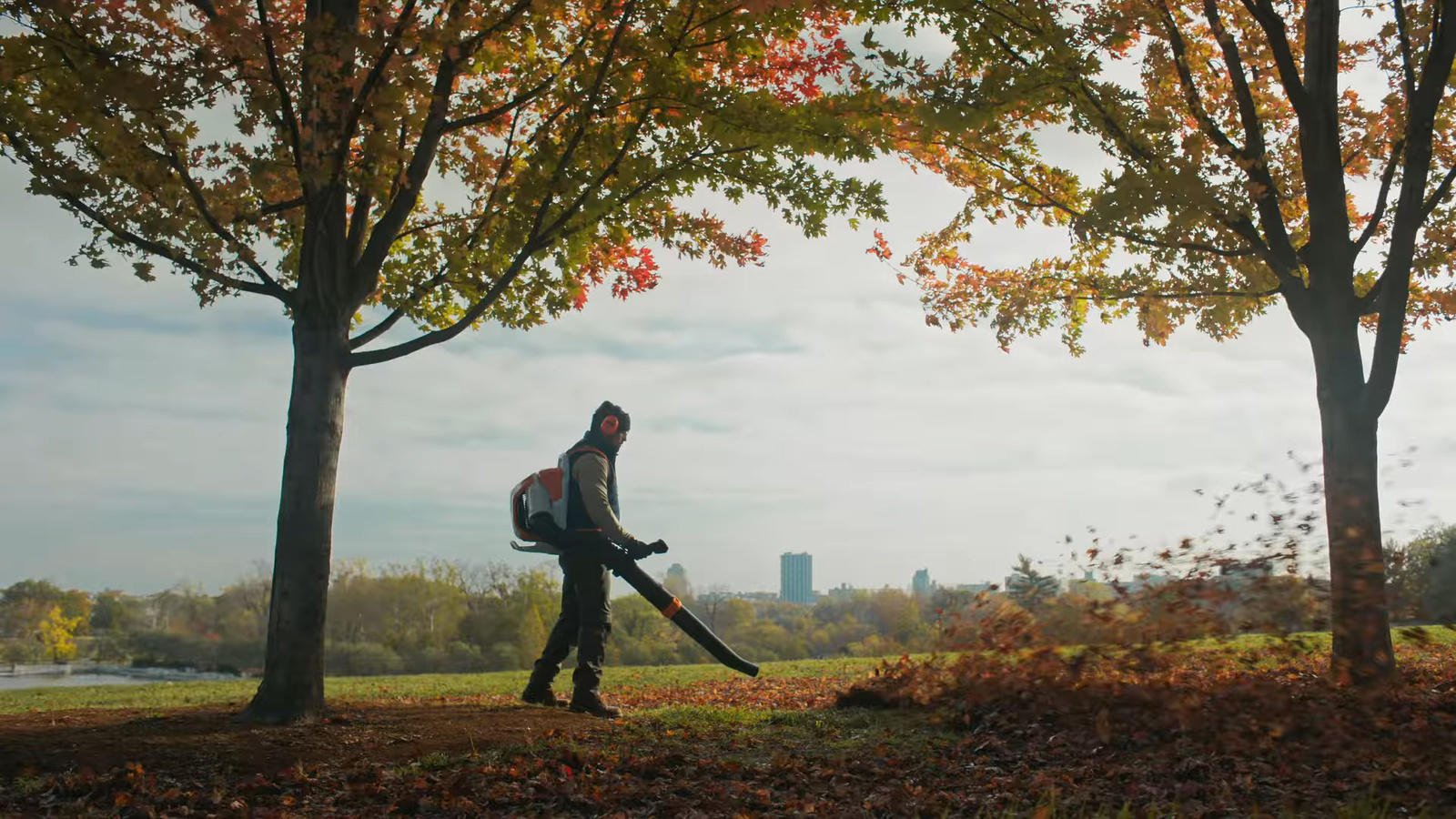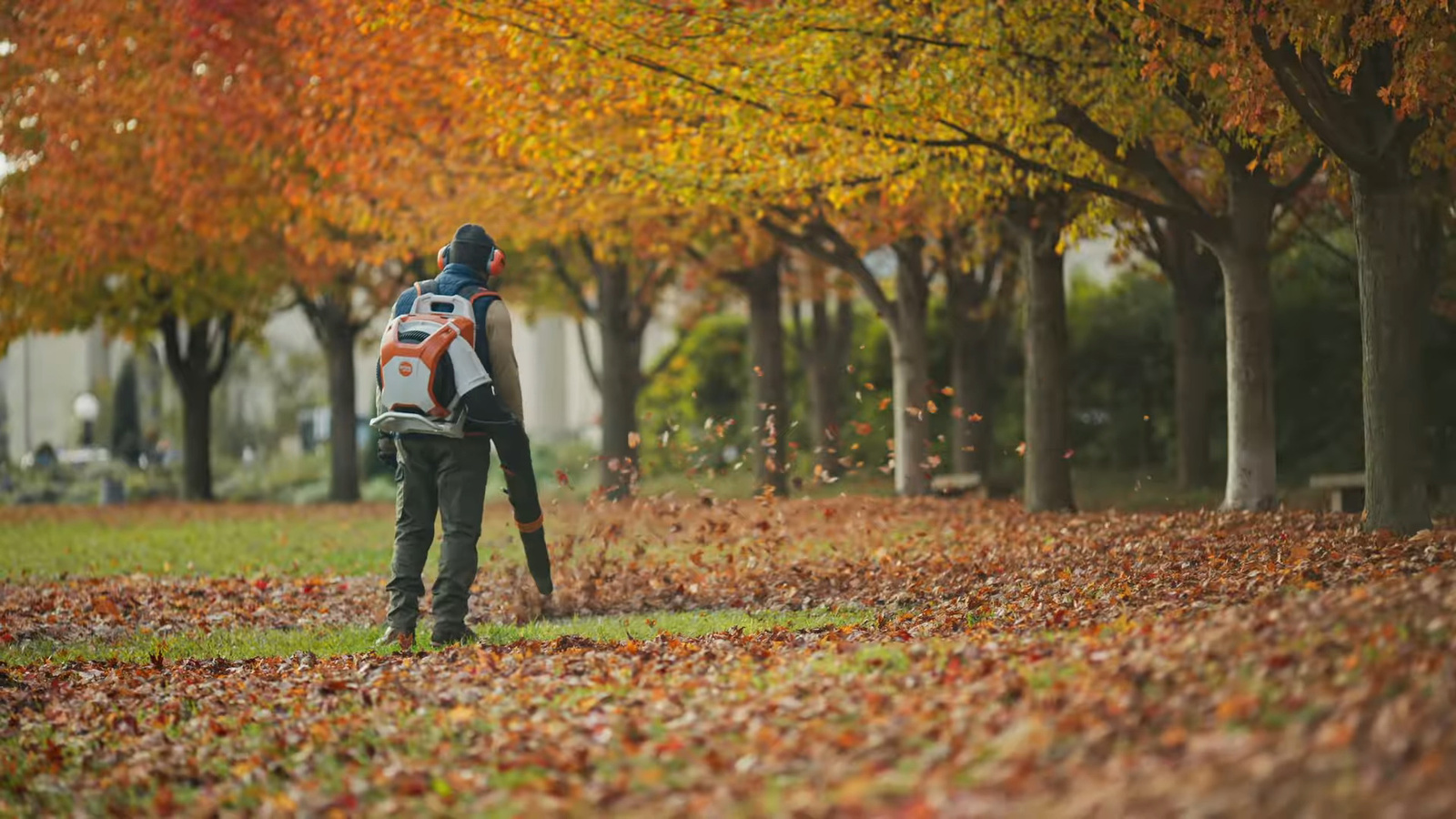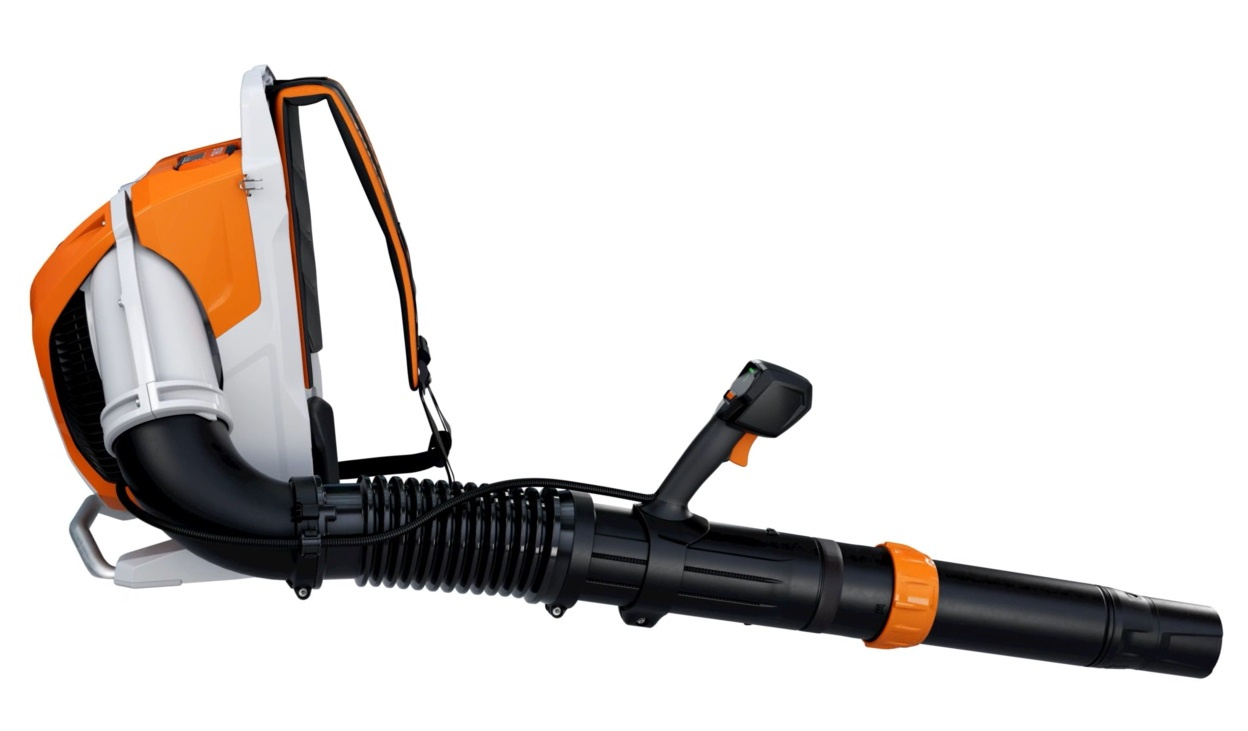 Ergonomiczna konstrukcja z wygodnym systemem nośnym i pasami w kształcie litery S równomiernie rozkłada ciężar, minimalizując zmęczenie przy długotrwałym użytkowaniu. Dmuchawa obsługuje dwa akumulatory z serii STIHL AP, a cyfrowy panel sterujący umożliwia wybór spośród czterech trybów pracy – od ekonomicznego po tryb boost dla maksymalnej mocy. Wyświetlacz dostarcza również informacji o poziomie naładowania baterii i statusie urządzenia. Zintegrowany moduł HMI ADVANCE PLUS pozwala na podłączenie dmuchawy do systemu STIHL connected, co umożliwia monitorowanie danych eksploatacyjnych oraz aktywację trybu oszczędzania energii.