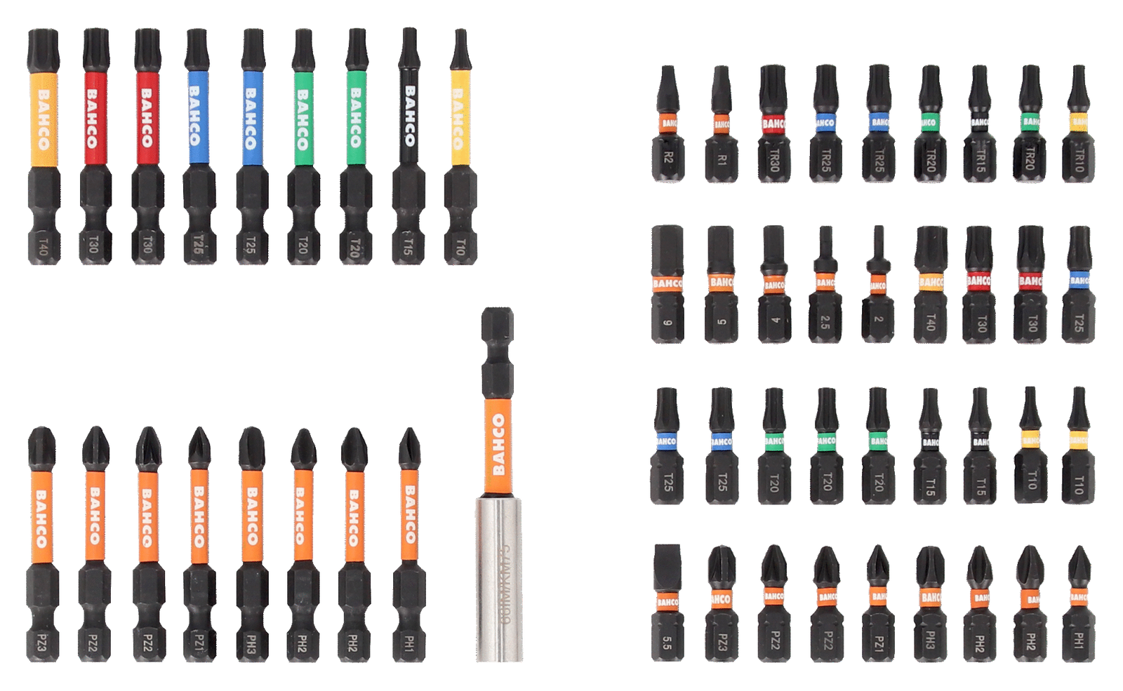 Zestaw bitów udarowych Bahco 66IM/54C-1 to wszechstronny komplet przeznaczony do intensywnego użytku profesjonalnego, szczególnie z wkrętarkami udarowymi. W jego skład wchodzi 54 elementy, w tym 53 bity udarowe oraz 1 magnetyczny uchwyt na bity o długości 75 mm.