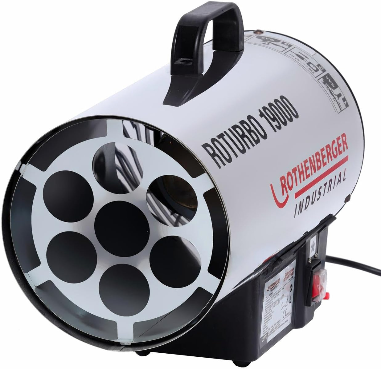 Nagrzewnica gazowa Rothenberger Industrial RoTurbo 19000 to wydajne urządzenie przeznaczone do ogrzewania dobrze wentylowanych przestrzeni osłoniętych, takich jak namioty, stoiska targowe czy hale magazynowe. Urządzenie zostało zaprojektowane z myślą o bezpieczeństwie i trwałości - posiada podwójną obudowę ze stali nierdzewnej, zabezpieczenie termiczne przed przegrzaniem oraz standardową kratkę ochronną. Duży, solidny uchwyt ułatwia przenoszenie nagrzewnicy, a zapłon piezoelektryczny umożliwia szybkie i wygodne uruchomienie.