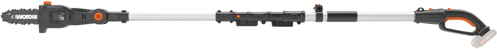 Podkrzesywarka akumulatorowa WORX WG349E.9 to praktyczne narzędzie przeznaczone do pielęgnacji drzew i krzewów, szczególnie w trudno dostępnych miejscach. Dzięki teleskopowemu wysięgnikowi o długości do 2,3 metra użytkownik może wygodnie sięgać do wyżej położonych gałęzi bez potrzeby używania drabiny. Obrotowa głowica z trzema ustawieniami kąta nachylenia pozwala dostosować pozycję cięcia do warunków pracy, co ułatwia manewrowanie w gęstej roślinności. Prowadnica o długości 20 cm oraz prędkość przesuwu łańcucha 5 m/s gwarantują skuteczne i precyzyjne cięcie. Narzędzie wyposażono w funkcję automatycznego olejowania oraz system beznarzędziowej regulacji napięcia łańcucha, co zwiększa komfort i bezpieczeństwo obsługi. Pilarka jest zasilana akumulatorem z systemu PowerShare 18V, który można stosować również w innych urządzeniach marki Worx.