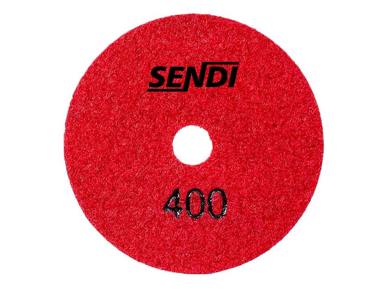 Pad polerski Ø100 #400 Sendi 01120001040 to narzędzie przeznaczone do końcowego etapu szlifowania i polerowania na sucho twardych materiałów, takich jak granit, marmur, ceramika, gres porcelanowy czy beton. Dzięki gradacji #400 możliwe jest uzyskanie gładkiej, wstępnie wypolerowanej powierzchni, gotowej do dalszego wykończenia lub użytkowania.