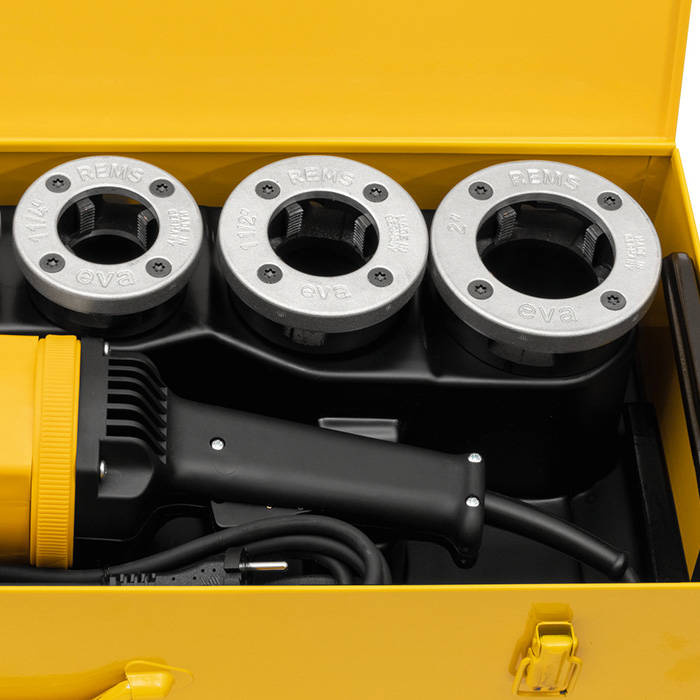 Gwintownica do rur REMS 540020 R to elektryczna gwintownica wyposażona w silnik o mocy 1700 W, z 30 % zwiększeniem mocy poprzez automatyczne przestawianie się szczotek przy zmianie kierunku obrotów. Wyposażona w łatwy w użyciu uchwyt prowadzący do mocowania dla momentów obrotowych w obu kierunkach obrotów.