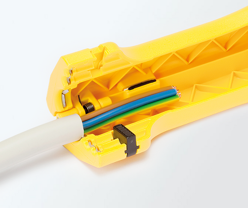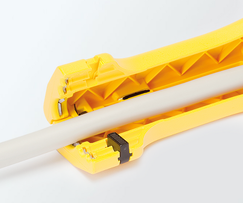 Model Uni-Plus 30400 został zaprojektowany z myślą o wygodzie i bezpieczeństwie użytkownika. Nie wymaga regulacji głębokości cięcia – stałe ustawienie pozwala skutecznie usuwać wyłącznie zewnętrzną warstwę izolacji. Dodatkowo wyposażono go w dwa precyzyjne karby do zdejmowania izolacji z pojedynczych żył o przekroju 1,5 mm² i 2,5 mm². Zdejmowana opora umożliwia wygodne użytkowanie zarówno przez osoby prawo-, jak i leworęczne.
