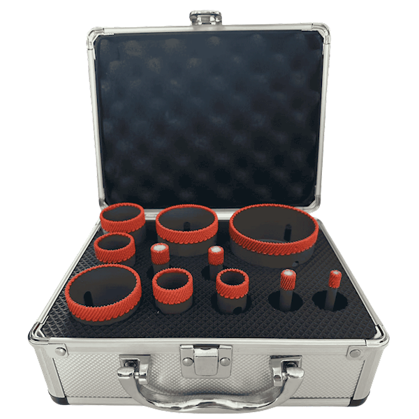 Zestaw otwornic Wertec WTAST11 11 el.  to profesjonalne narzędzia glazurnicze przeznaczone do wiercenia otworów w wyjątkowo twardych materiałach, takich jak gres, płytki ceramiczne, marmur, granit czy terakota. Dzięki zastosowaniu technologii próżniowego lutowania diamentów w temperaturze przekraczającej 1000°C, otwornice charakteryzują się bardzo wysoką trwałością oraz skutecznością działania.