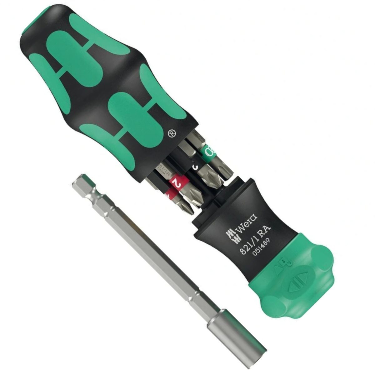 - 1x wkrętak Kraftform Kompakt 28 RA 1 z grzechotką i teleskopowym trzpieniem bagnetowym