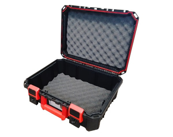 Dzięki zastosowaniu litej uszczelki oraz pianki zabezpieczającej wewnątrz korpusu i pokrywy, narzędzia są skutecznie chronione przed wstrząsami i działaniem czynników zewnętrznych. Skrzynka posiada wygodny, długi uchwyt w pokrywie oraz dodatkowy uchwyt boczny, oba wykonane z trwałego tworzywa ABS. Maksymalna ładowność wynosi 25 kg, co czyni ją praktyczną i pojemną opcją do zastosowań warsztatowych i terenowych.