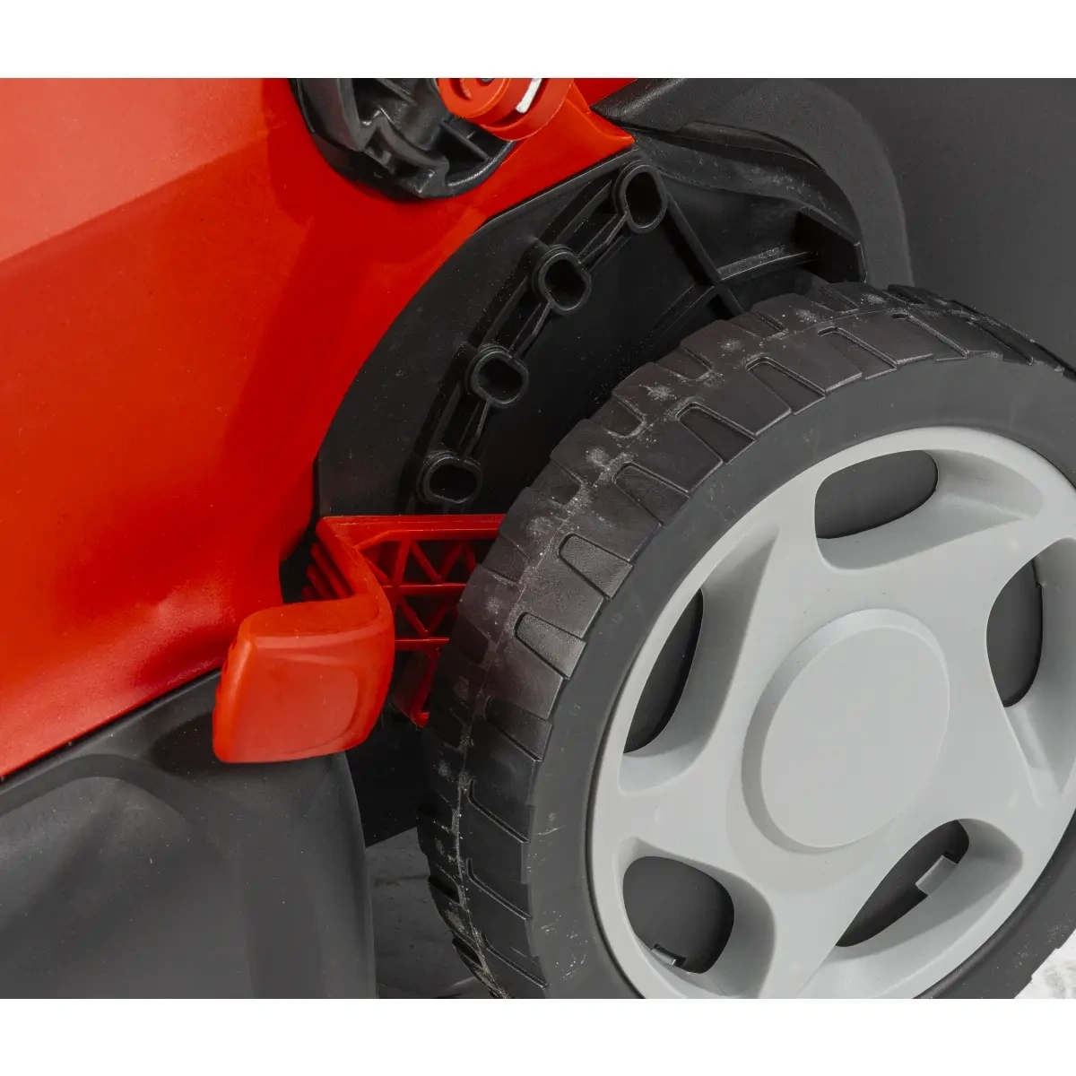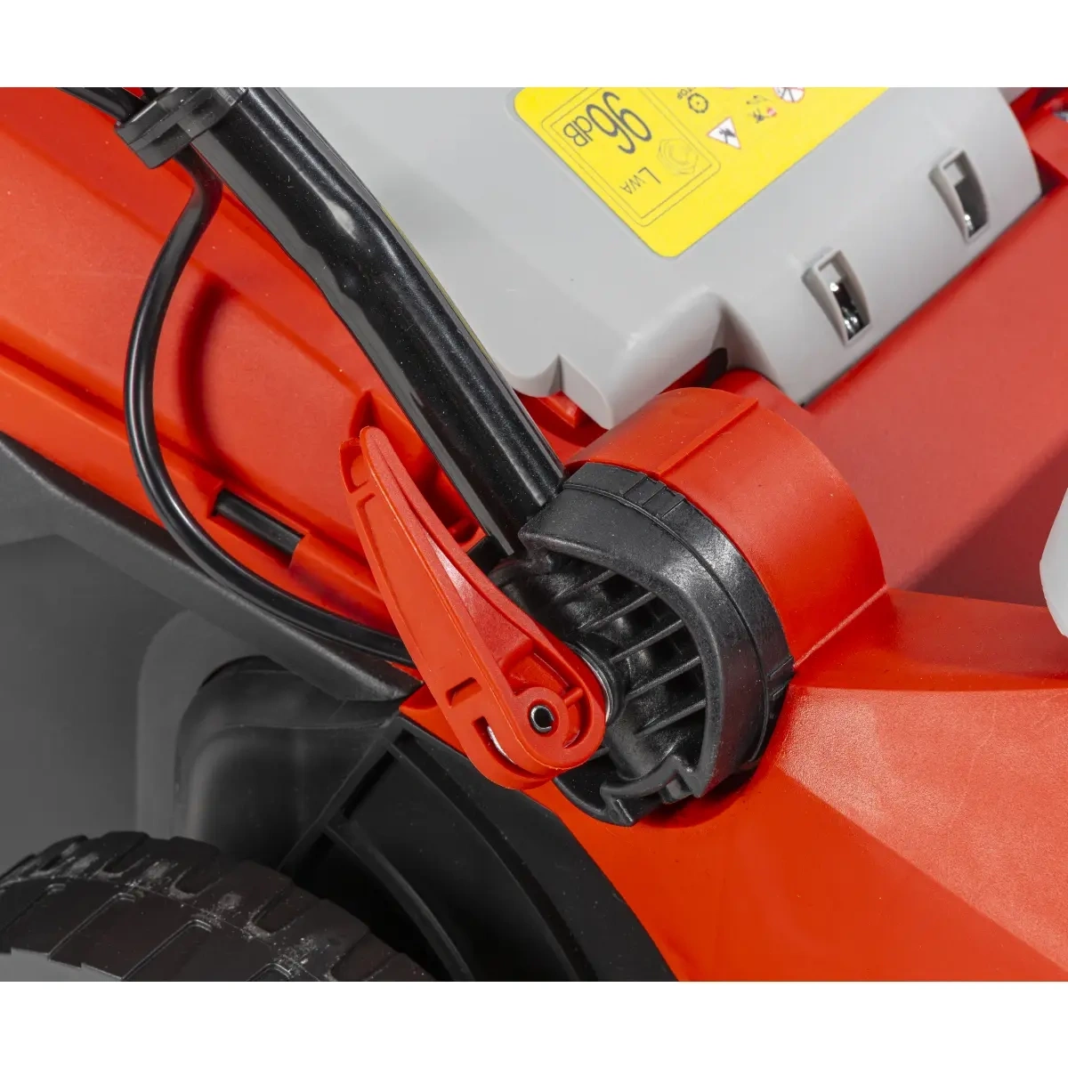 Kosiarka została zaprojektowana z myślą o bezpieczeństwie – posiada klasę ochrony IPX4, co oznacza odporność na zachlapania wodą. Kosz na trawę o pojemności 40 litrów umożliwia dłuższą pracę bez konieczności częstego opróżniania.