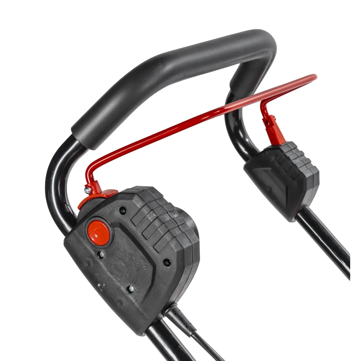 Urządzenie oferuje możliwość centralnej regulacji wysokości koszenia w zakresie od 20 do 70 mm, co pozwala dostosować wysokość trawnika do indywidualnych potrzeb. Regulacja wysokości uchwytu sprawia, że praca z kosiarką jest komfortowa niezależnie od wzrostu użytkownika. Z kolei składana rączka ułatwia przechowywanie urządzenia po zakończeniu pracy.