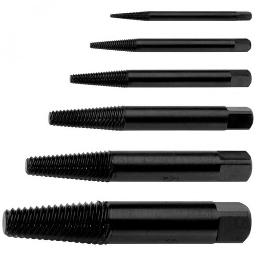 - Zestaw 6 wykrętaków do usuwania złamanych śrub i trzpieni gwintowanych