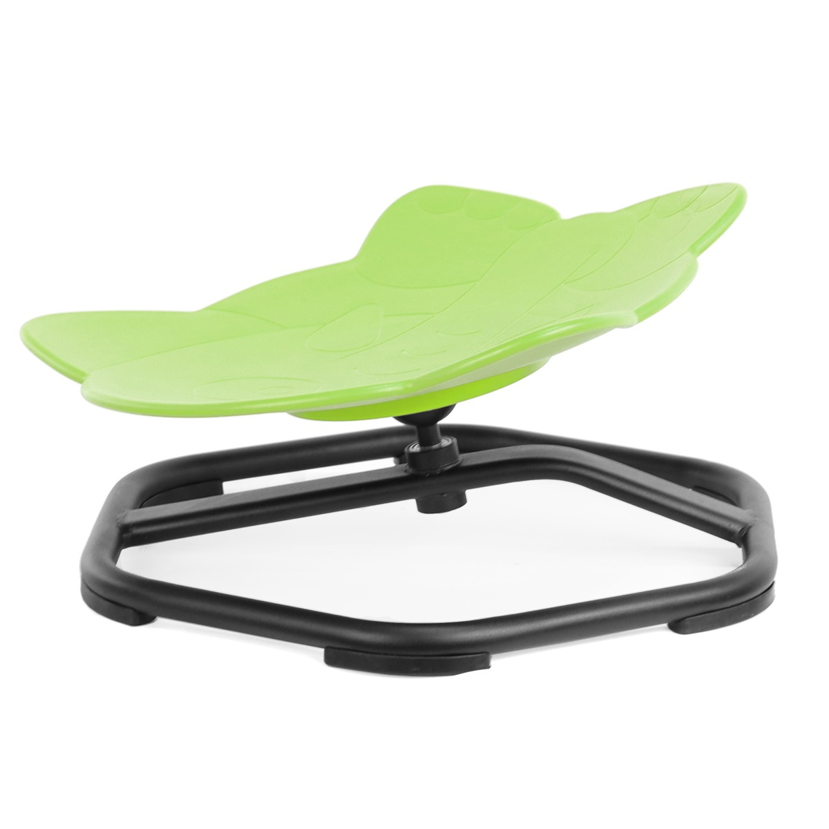 Dziecko siada na siedzisku i delikatnie przenosi ciężar ciała na boki. Specjalnie wyprofilowana, lekko nachylona powierzchnia wprawia karuzelę w ruch. Tempo i kierunek obrotu zależą wyłącznie od dziecka. Młodsze maluchy mogą dodatkowo pomagać sobie, odpychając się stopami od podłoża.