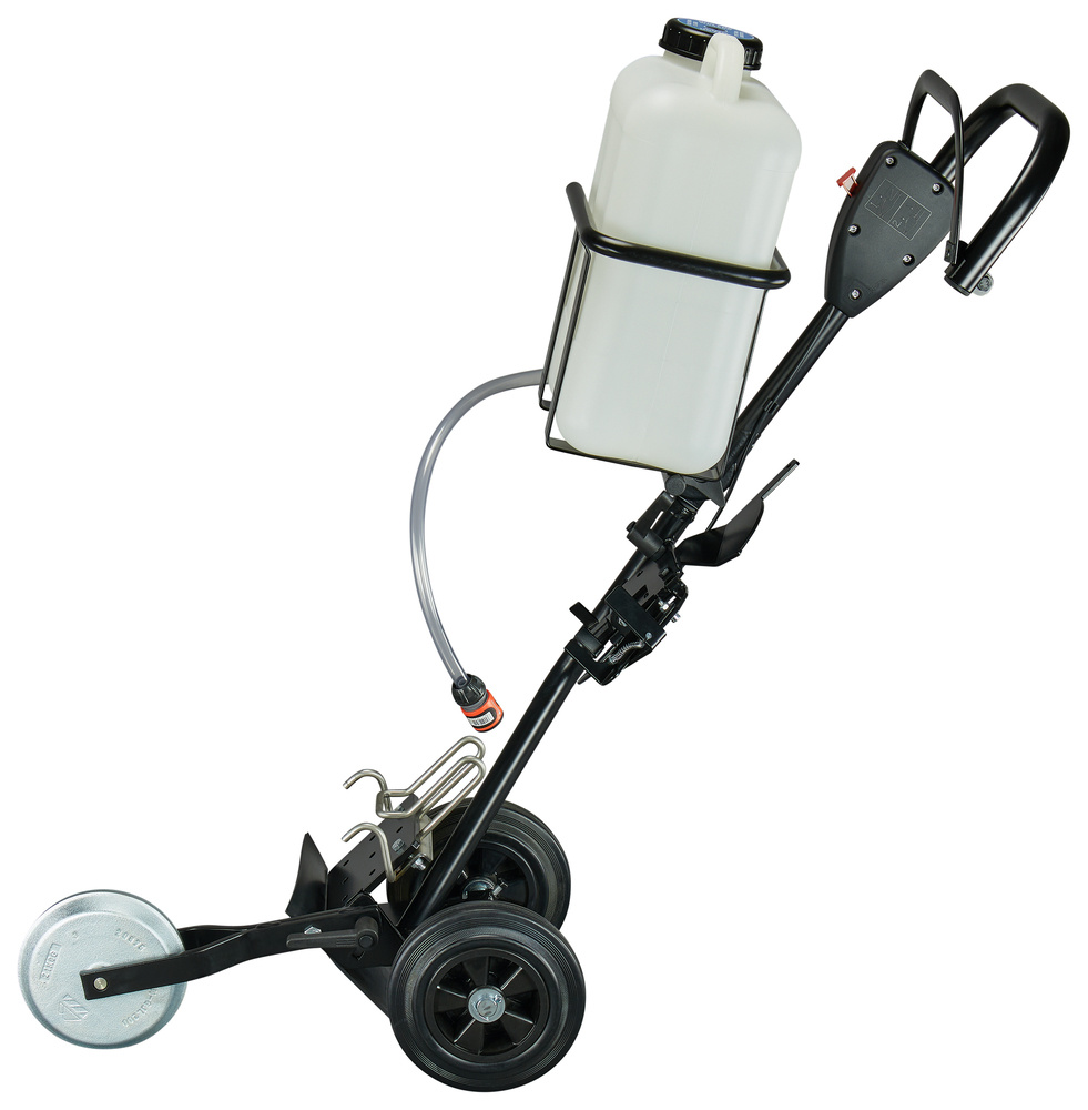Wózek prowadzący Makita DT4000 to oryginalne akcesorium przeznaczone do współpracy ze spalinową przecinarką do betonu Makita EK7651. Ułatwia precyzyjne prowadzenie narzędzia podczas cięcia, zwiększając komfort i bezpieczeństwo pracy. Dzięki regulowanemu uchwytowi oraz poprawionemu wyważeniu, użytkownik zyskuje lepszą kontrolę nad przecinarką, co przekłada się na dokładniejsze i bardziej równomierne cięcia. Zintegrowany zbiornik na wodę o pojemności 15 litrów ogranicza przerwy na uzupełnianie, a szybka regulacja głębokości cięcia pozwala na sprawną i efektywną pracę. Wózek wyposażono również w beznarzędziowy system podłączenia wody, co czyni go praktycznym dodatkiem dla profesjonalistów pracujących z przecinarkami Makita.