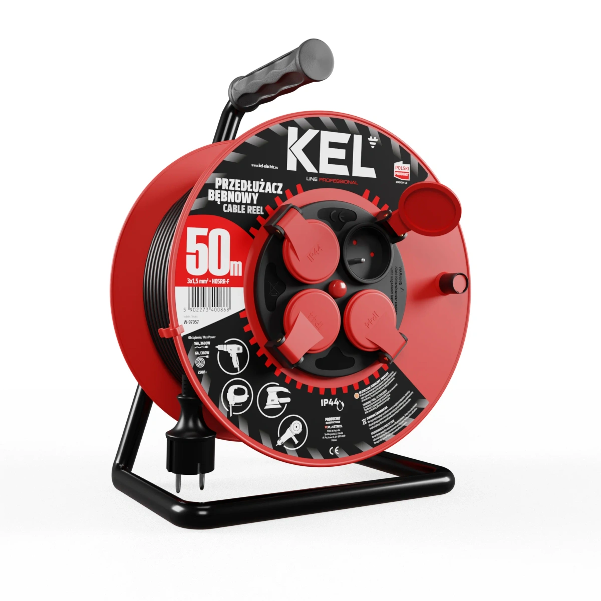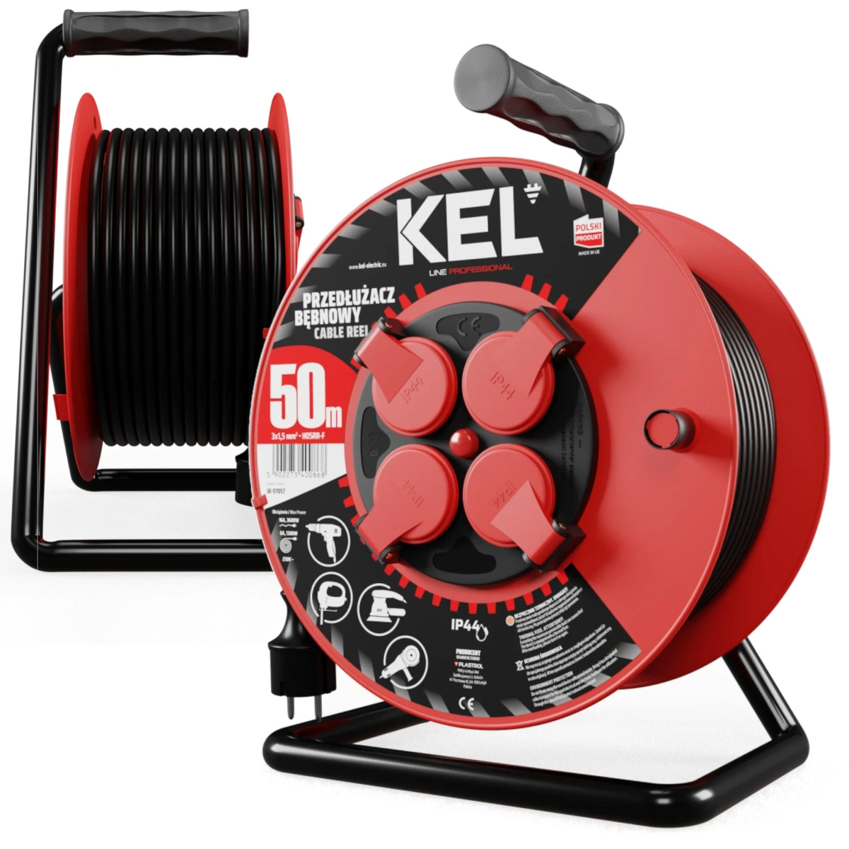Przedłużacz bębnowy Plastrol PB-PRO/D/50M/3X1,5/H05RR-F W-97057 z serii PROFESSIONAL LINE, został zaprojektowany z myślą o intensywnym użytkowaniu w warunkach warsztatowych, przemysłowych i budowlanych. Dzięki 50-metrowemu przewodowi H05RR-F o przekroju 3×1,5 mm² zapewnia on znaczny zasięg pracy, pozwalając na zasilanie urządzeń oddalonych od źródła prądu.