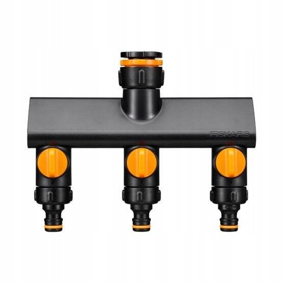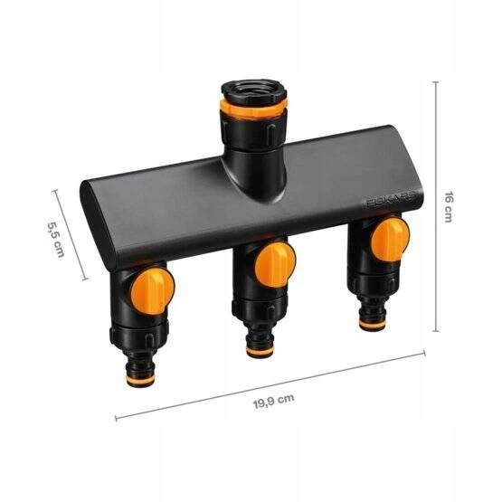 Rozdzielacz potrójny Fiskars 1070578 to praktyczne rozwiązanie do zarządzania systemem nawadniania ogrodu. Umożliwia podłączenie aż trzech węży do jednego kranu, dzięki czemu można efektywnie rozdzielać wodę do różnych części ogrodu lub różnych urządzeń. Każde z trzech wyjść wyposażone jest w niezależny zawór, co pozwala na precyzyjne kontrolowanie przepływu wody poprzez włączanie lub wyłączanie każdego kanału oddzielnie.