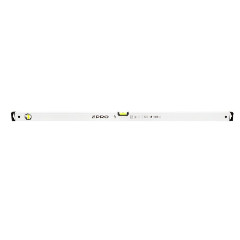 Poziomica PRO600 120 cm z libellą 2% PRO-AB120 to precyzyjne narzędzie pomiarowe zaprojektowane z myślą o profesjonalistach, którzy oczekują dokładności i wygody użytkowania. Dzięki jednokomorowemu profilowi z przetłoczeniami, poziomica łączy w sobie niską wagę i wysoką sztywność konstrukcji. Zastosowany system ERS+ (Easy Reading System) umożliwia łatwiejszy i szybszy odczyt pomiaru dzięki większemu powiększeniu soczewki. Dodatkowe pierścienie na libelli pozwalają na szybkie wyznaczanie spadku 2%, co jest szczególnie przydatne przy pracach instalacyjnych i montażowych. Białe, malowane proszkowo wykończenie zapewnia estetyczny wygląd i odporność na ścieranie. Specjalnie zaprojektowane elastomerowe nasadki końcowe (ANTI SHOCK CAP) chronią narzędzie przed uszkodzeniami w przypadku upadku, a masywne przetłoczenia boczne poprawiają ergonomię chwytu.