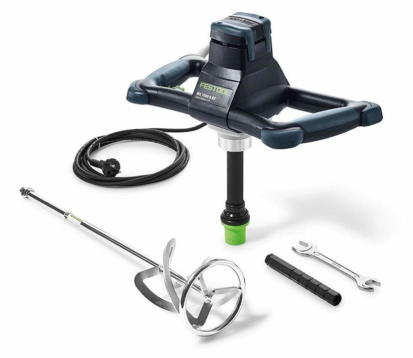- Mieszarka MX 1000 E EF HS3R Festool 768001.Przeznaczona do miesania różnych materiałów do 40l, zabezpieczenie przed wodą i innymi zanieczyszczeniami, adapter ErgoFix, klucz dwustronny płaski, prędkość obrotowa: do 630/min, maks. średnica mieszadła: 120mm.