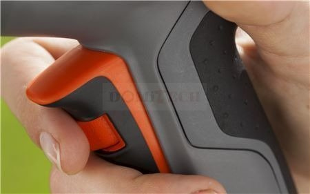 - Ergonomiczny uchwyt z elementami z miękkiego tworzywa sztucznego zapewnia większą wygodę podczas dłuższej pracy. Pistolet nie wyślizguje się, pewnie leży w dłoni.