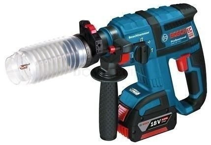 - Zbiornik na pył Bosch 1600A00F85. Jest to osłona przeciwpyłowa zapewniająca bezpyłowe wiercenie w poziomie i pionie. Ma możliwość podłączenia do młota udarowo-obrotowego Bosch 2-4 kg i 18 V lub 36 V z uchwytem SDS-plus.