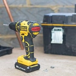 - Stanley Fatmax FMC628C2K to solidna, 2-biegowa wiertarko-wkrętarka z udarem zasilana akumulatorem litowo-jonowym o napięciu 18 V.