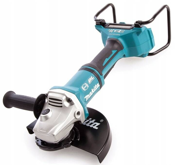 Szlifierka kątowa Makita DGA900Z to mocna szlifierka kątowa o dużej wydajności z silnikiem bezszczotkowym i tarczą 230 mm, do użytku profesjonalnego. Zasilana napięciem 36V uzyskanym dzięki zastosowaniu 2 akumulatorów 18V LXT. Wyposażona duży włącznik łopatkowy z zabezpieczeniem przed przypadkowym uruchomieniem. Szlifierka kątowa posiada elektronikę odpowiadającą za utrzymanie stałej prędkości obrotowej pod obciążeniem, ochronę przed przeciążeniem oraz hamulec elektryczny poprawiający bezpieczeństwo.