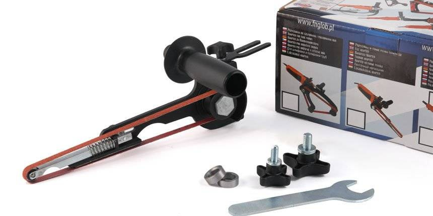 - Przystawka w formie pilnika na pasy bezkońcowe Glob System GS03-00. Do szlifierek kątowych 125 mm z płynną regulacją obrotów. Do wygładzania krawędzi, wyrównywania spoin, polerowania, gratowania. Długość pasów bezkońcowych: 550 mm/ szerokość: 10 mm.