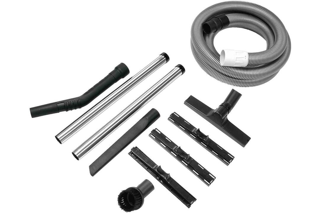 - Festool 203433 (stary 767985) to zestaw do czyszczenia złożony z węża o średnicy 36 mm, rury uchwytowej z regulacją siły ssania, rur przedłużających ze stali szlachetnej, głowicy uniwersalnej, głowicy do fug oraz pędzla szczotkowego.