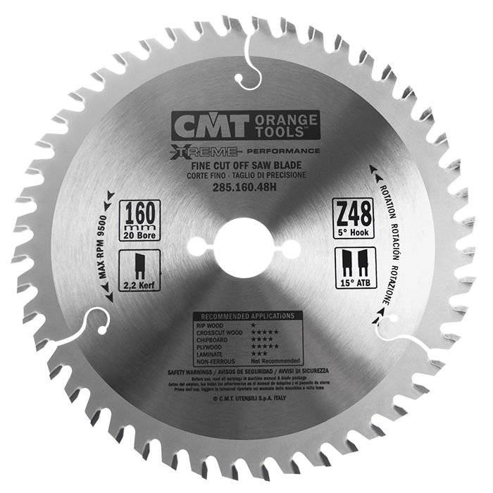 - Piła HM D=160 F=20 Z=48 CMT 285.160.48H do cięcia poprzecznego miękkiego i twardego drewna oraz materiałów drewnopochodnych. Średnica: 160 mm. Średnica otworu: 20 mm. Liczba zębów: 48. Szerokość rzazu / grubość płytki: 2,2 mm. Kąt natarcia: 5°.