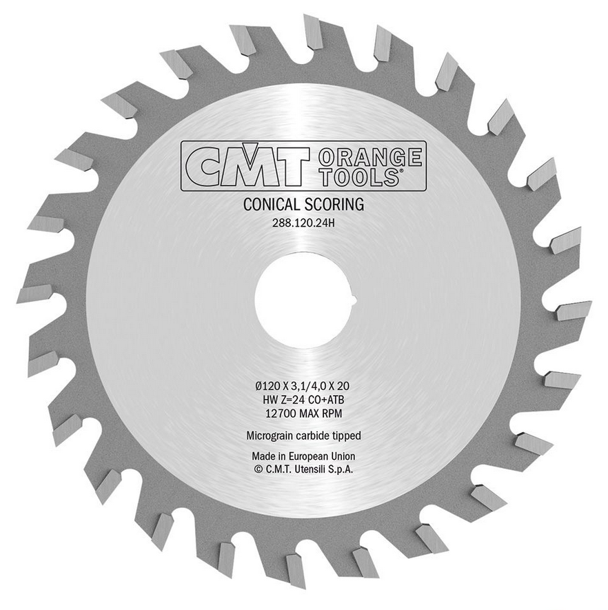 - Piła podcinak trapezowy HM D=120 F=20 CMT 288.120.24H do podcinania płyt jedno lub dwustronnie laminowanych oraz MDF. Średnica: 120 mm. Średnica otworu: 20 mm. Liczba zębów: 24. Szerokość rzazu / grubość płytki: 3,1-4,0 mm. Kąt natarcia: 5°.