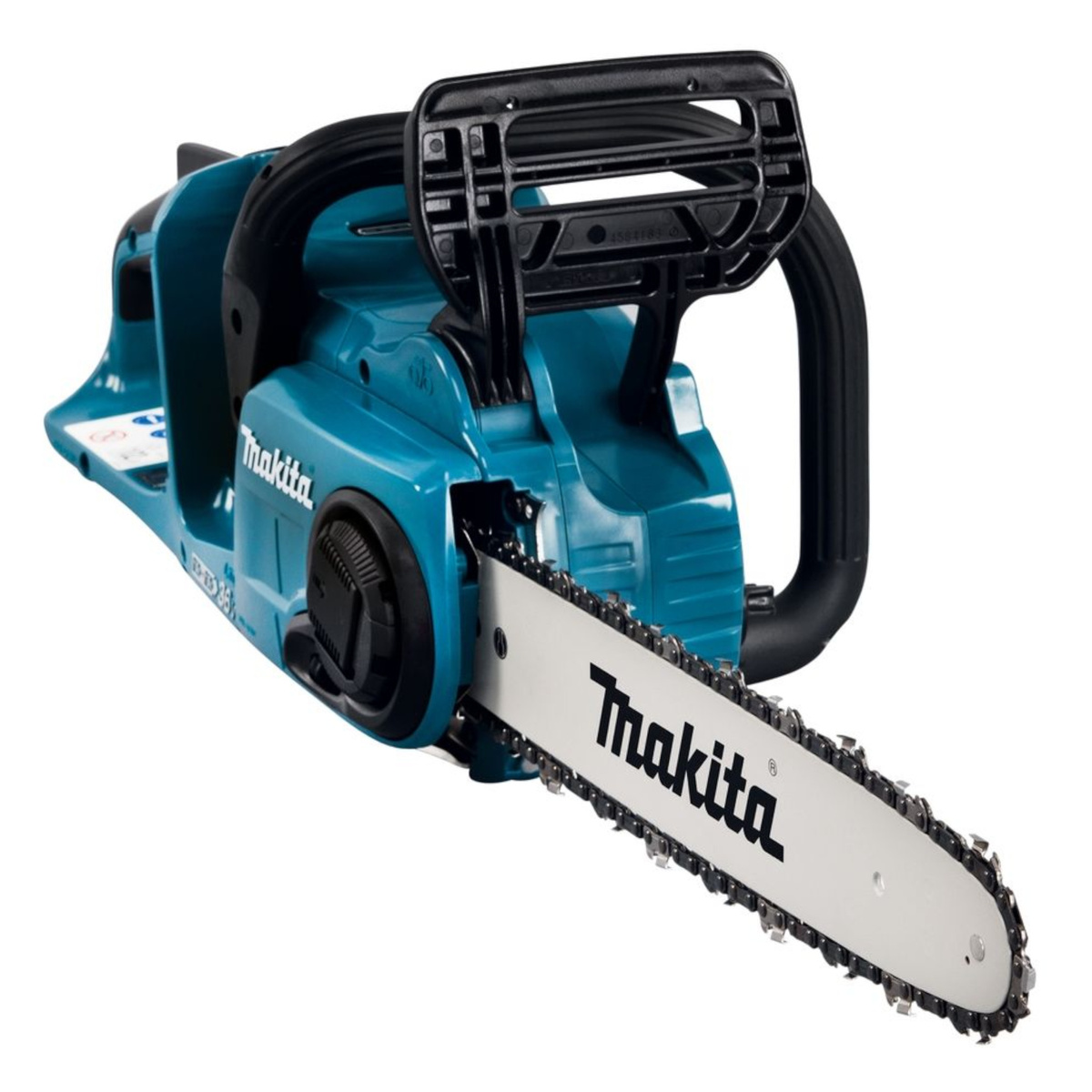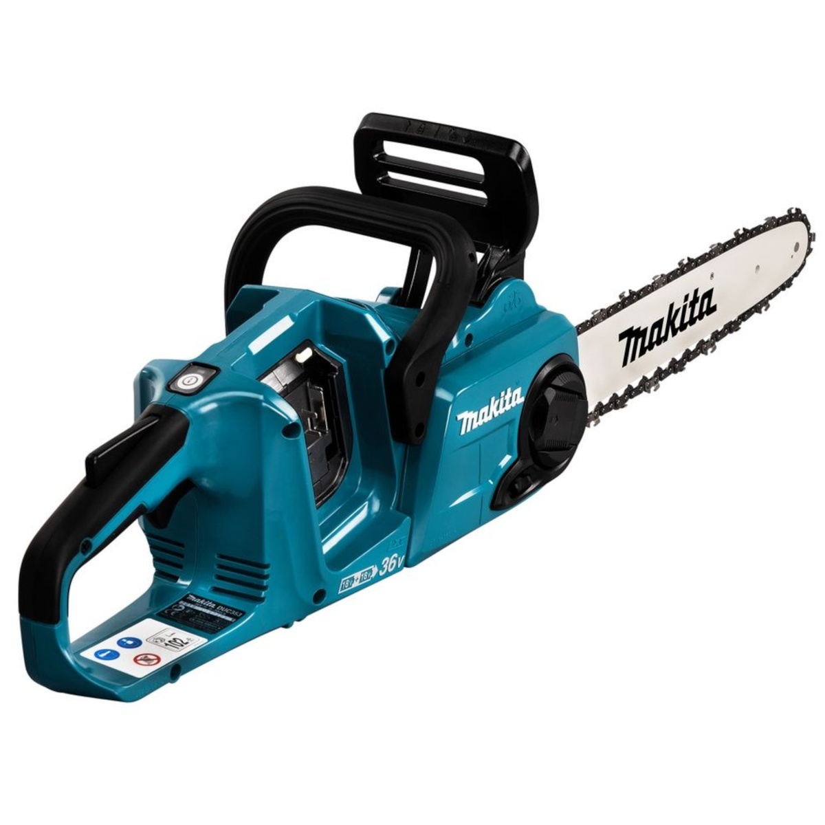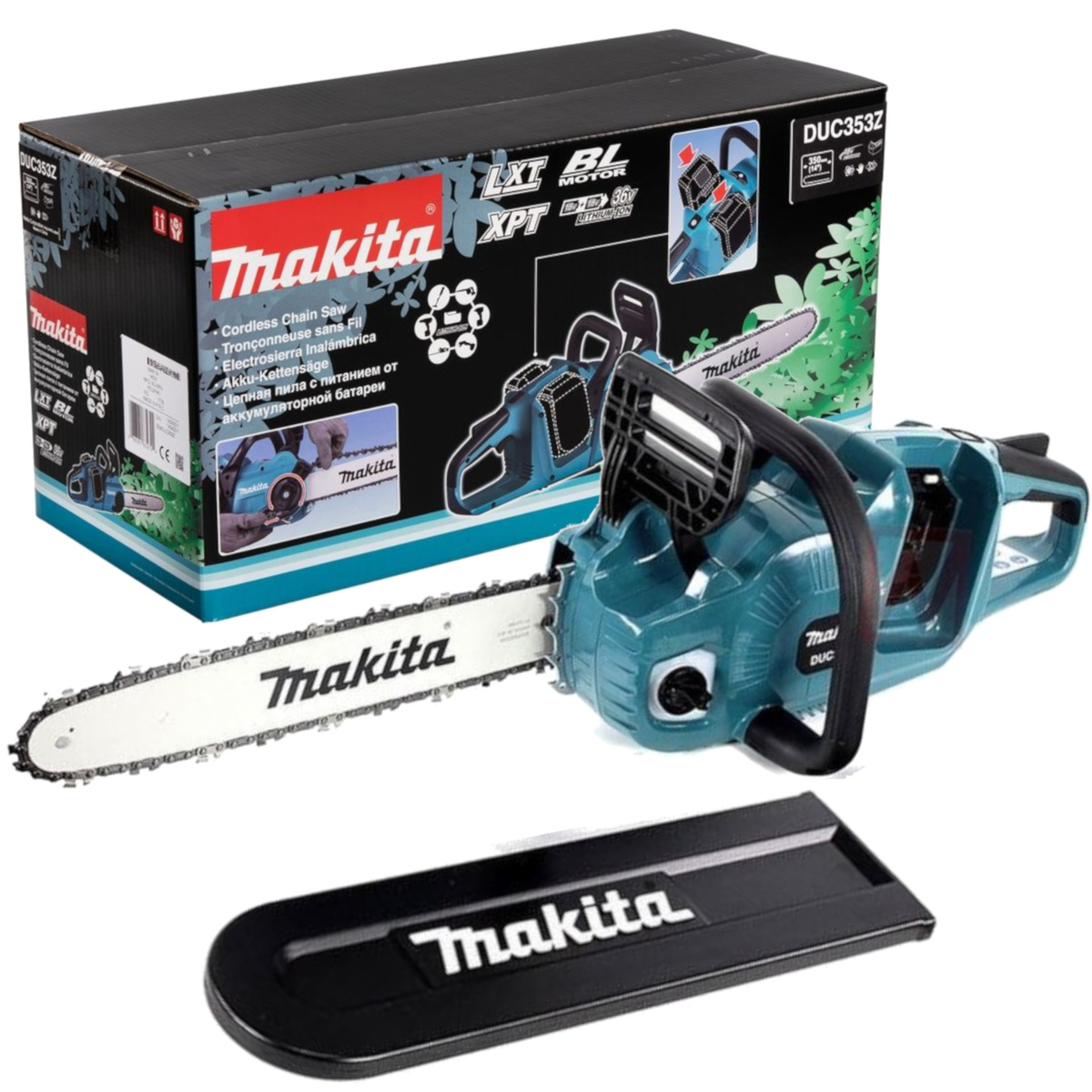 Akumulatorowa pilarka łańcuchowa Makita DUC353Z. Napięcie: 2 x 18 V. Bezszczotkowy silnik. W zestawie: łańcuch tnący, prowadnica łańcucha, osłona zespołu tnącego, ostroga zębata. Wersja bez akumulatorów i ładowarki.