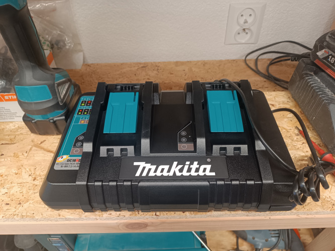 - Ładowarka dwuportowa DC18RD Makita 196933-6. Typ akumulatorów: Li-Ion. Napięcie akumulatorów: 14,4-18 V. Czas ładowania: 15-45 min.