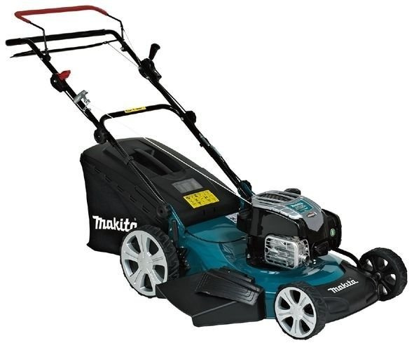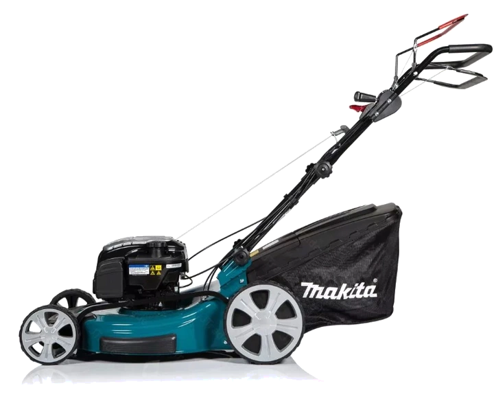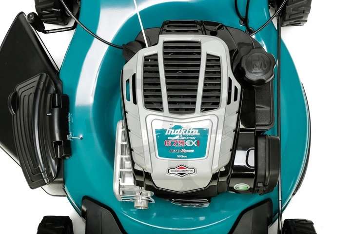 • Spalinowa kosiarka do trawy z napędem Makita PLM5600N2. Silnik: B&S 675EXi Ready Start. Maks. moment obrotowy: 9,8 Nm. Szerokość koszenia: 56cm. Wysokość koszenia: 25-70mm. W zestawie: ostrze tnące, mulczer, pokrywa wyrzutu bocznego, kosz na trawę, klucz.