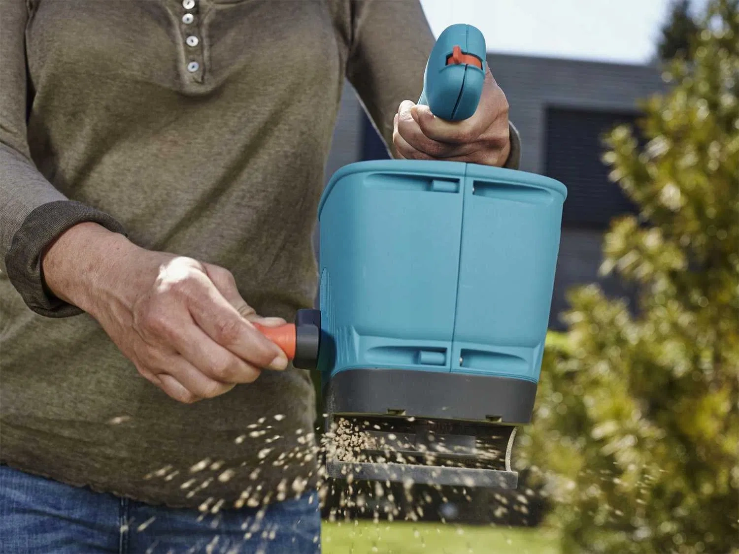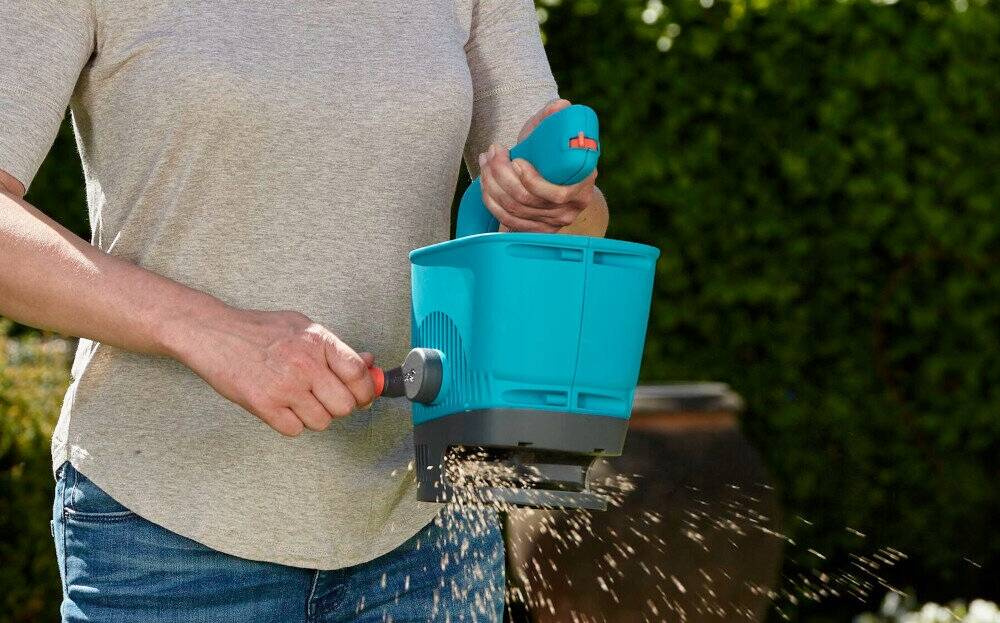 Siewnik ręczny M Gardena 00431-20 to niezawodne narzędzie do równomiernego rozsiewania nawozu, nasion, granulatu, piasku czy soli na powierzchni do 100 m². Idealny do stosowania zarówno w sezonie letnim, jak i zimowym, zapewnia precyzyjną pracę dzięki zaawansowanej konstrukcji. Mechanizm korbowy, umieszczony z boku urządzenia, pozwala na łatwą i wygodną obsługę, a ergonomiczny uchwyt umożliwia precyzyjne dostosowanie ilości rozsypywanego materiału. Siewnik został wyposażony w obrotową tarczę, która gwarantuje równomierny rozkład materiału bez ryzyka rozsypywania lub zapychania.