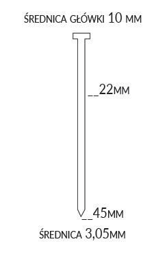 - Magazynek mieści 120 gwoździ o długości od 22 do 45 mm.
