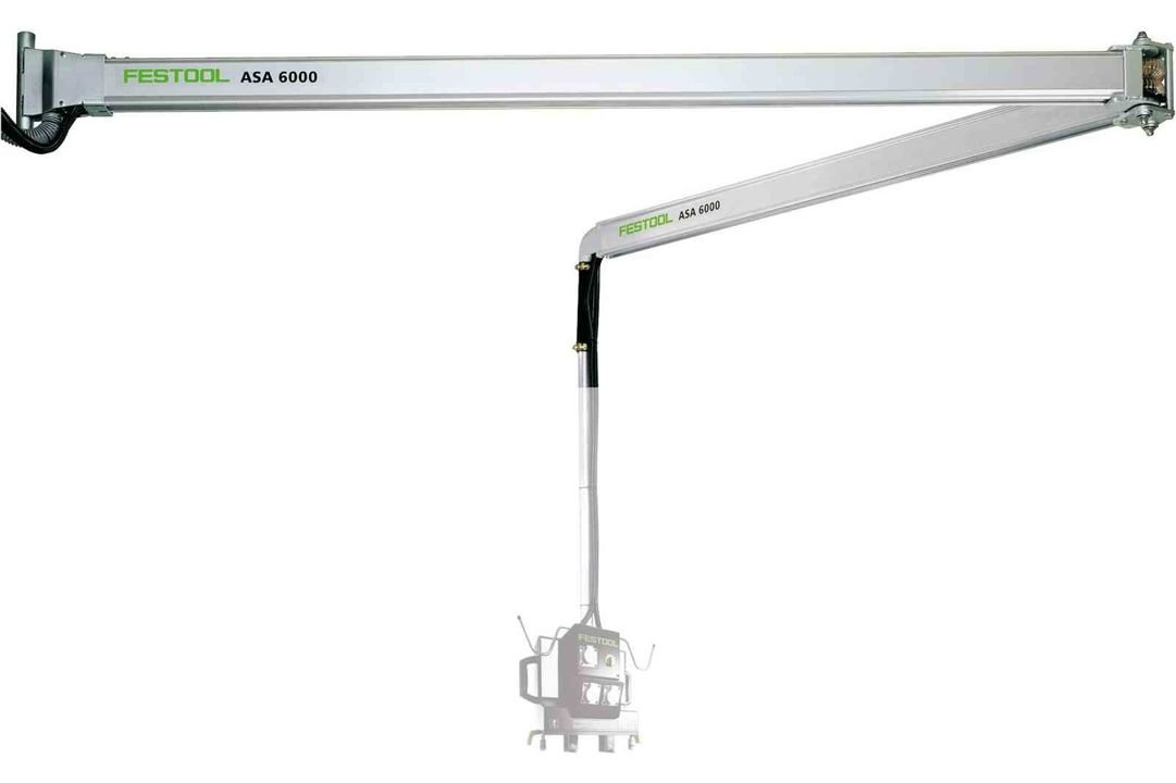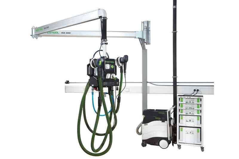 - Wysięgnik odsysający marki Festool ASA 6000 CT/SR-EU 583868 z zintegrowanymi przewodami elektrycznymi i pneumatycznymi gotowymi do podłączenia do EAA oraz CT. Dzięki wysięgnikowi oszczędzisz czas i miejsce.