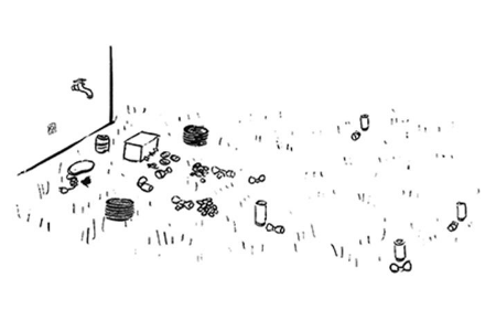 - Rozłóż wszystkie części w ogrodzie zgodnie z planem. Robiąc to, zacznij od początku systemu nawadniania.
