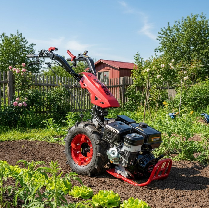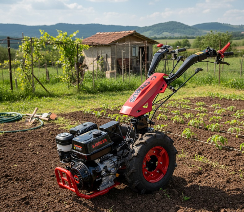 Traktorek jednoosiowy Cedrus TJ02 to wielofunkcyjne urządzenie do różnorodnych prac, wyposażone w trwały silnik marki Loncin, model G420F z elektrycznym rozrusznikiem. Traktorek posiada sprzęgło mechaniczne - suche, blokadę mechanizmu różnicowego, 3 biegi do przodu, 2 biegi wsteczne i oferuje prędkości 1,5km/h 3km/h i 11,2km/h. Traktorek jednoosiowy Cedrus TJ02 wyposażony został w koła 5"x10" oraz skrzynię biegów z przekładnią zębatą.