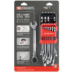 Zestawy kluczy Facom występują w wielu wariantach. W zależności od rodzaju planowanych prac można wybrać komplet najodpowiedniejszych kluczy z optymalnym zakresem rozmiarów. Do najbardziej uniwersalnych zestawów zaliczają się pakiety kluczy płasko-oczkowych z grzechotką - to zestawy narzędzi w zupełności wystarczające do większości zajęć wykonywanych w domu i w garażu. Dobrym wyborem będą także zestawy z kluczem nasadowym i kompletem nasadek, umożliwiające wygodne operowanie i dokręcanie śrub z dużą siłą.